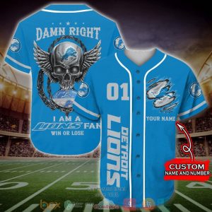 Personalized Detroit Lions Nfl Wings Skull Baseball Jersey Shirt
