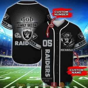 Personalized Las Vegas Raiders Nfl God First Family Second Then Baseball Jersey Shirt