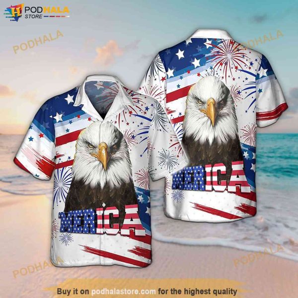 3D Happy Independence Day USA Eagle Merica Hawaiian Shirt, 4th of July Gift