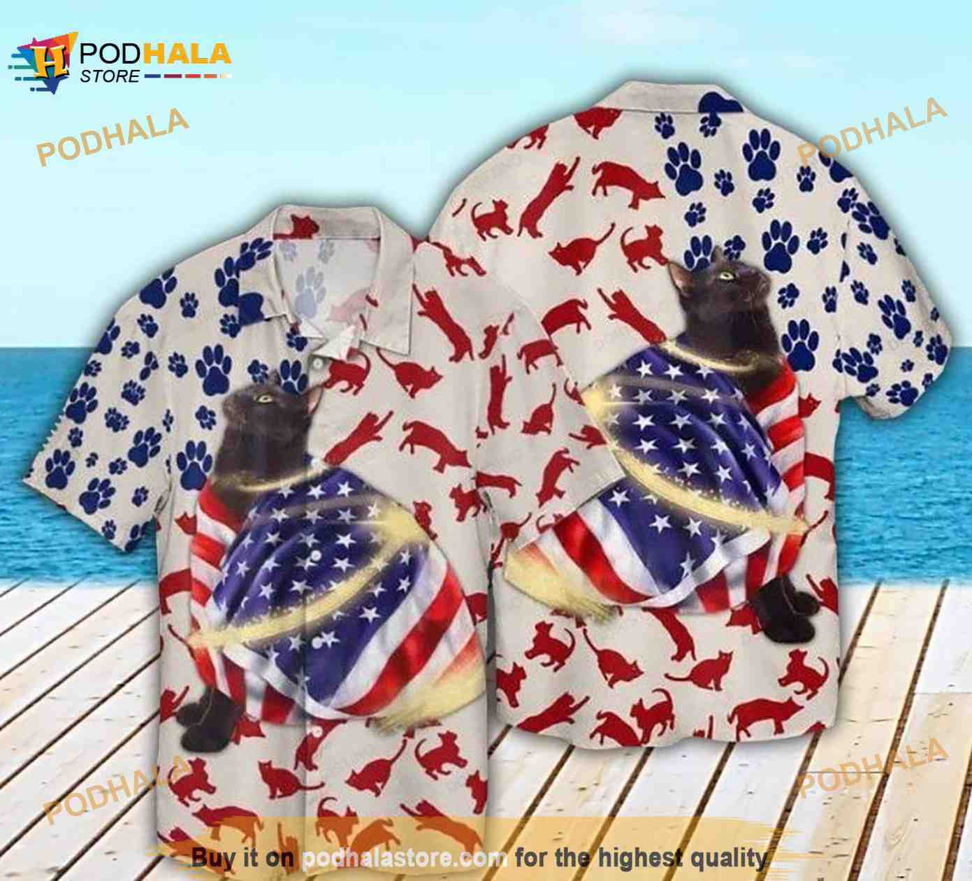 Get the look you need for any occasion with 4th Of July Independence Day Cat Black 3D Hawaiian Shirt. These customizable hawaiian shirts are perfect for any festival, party, vacation, or time at the beach. With multiple color options available these shirts will make you the real eye-catcher at any event!