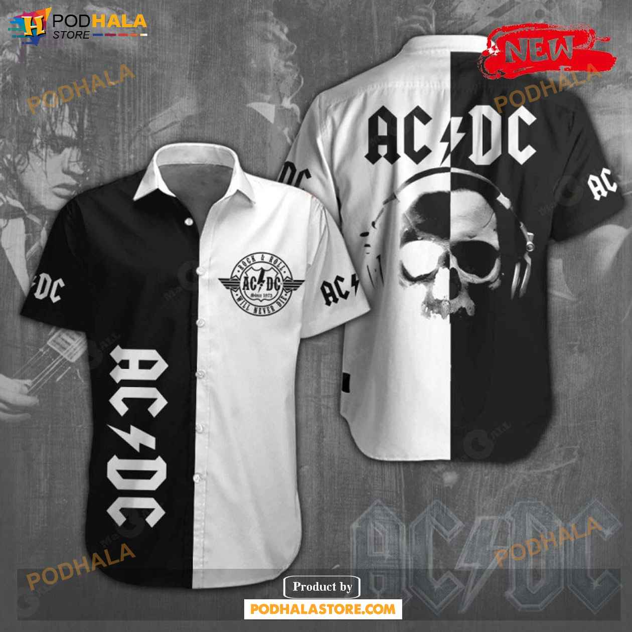 Acdc Skull Black White Mix Color Design Hawaiian Shirt