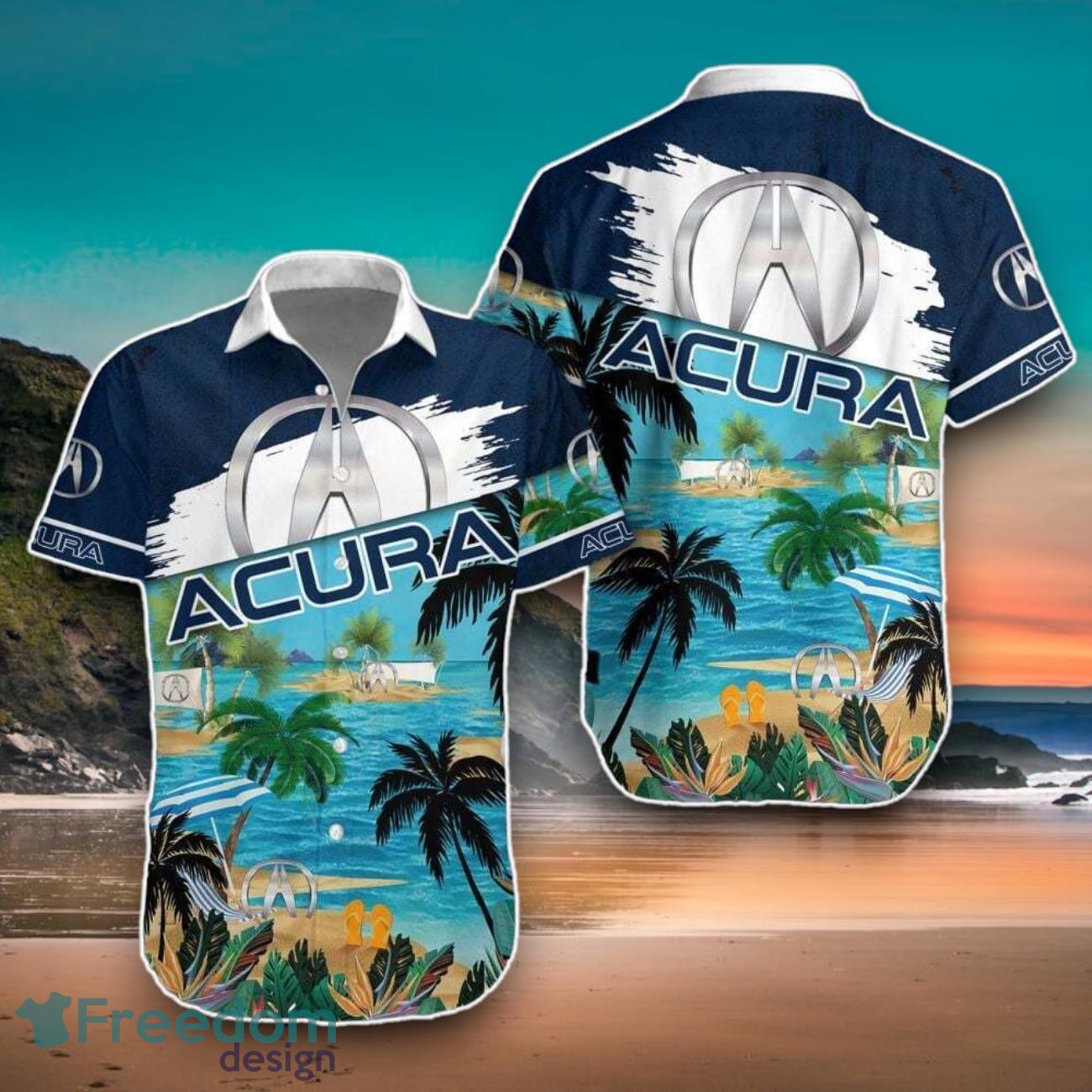 Acura Car Hawaiian Shirt Brand Logo And Beach Coastal Island Pattern Design