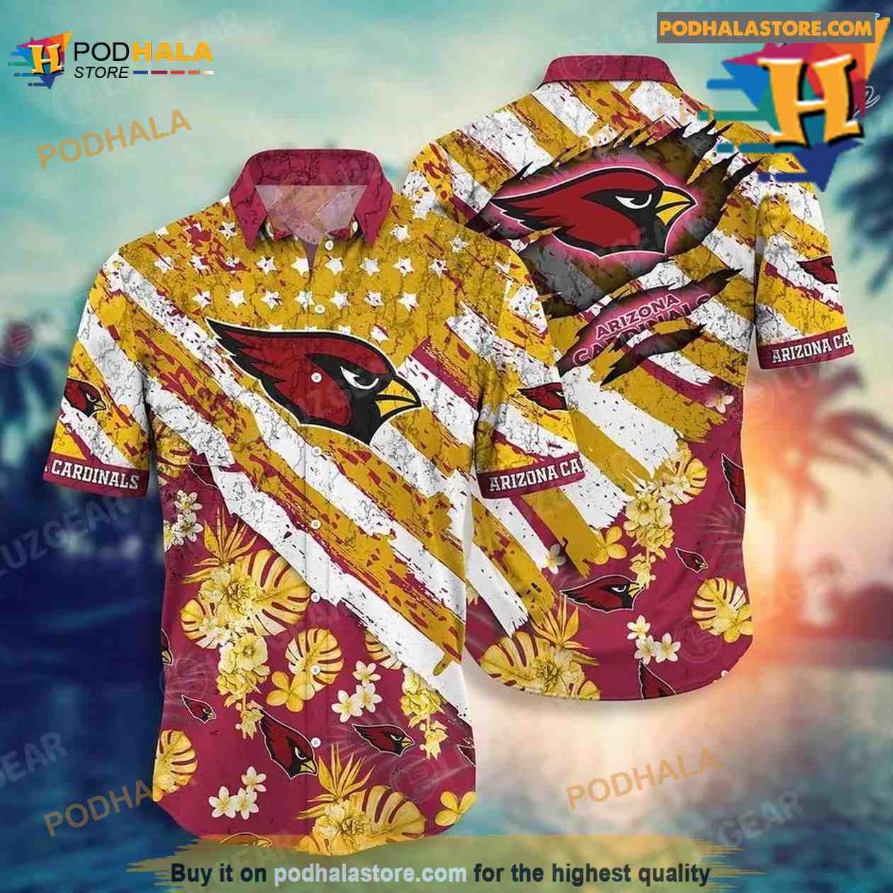 Get the look you need for any occasion with Arizona Cardinals NFL Hawaiian Shirt Floral Printed American Flag Hot Trending Summer. These customizable hawaiian shirts are perfect for any festival, party, vacation, or time at the beach. With multiple color options available these shirts will make you the real eye-catcher at any event!