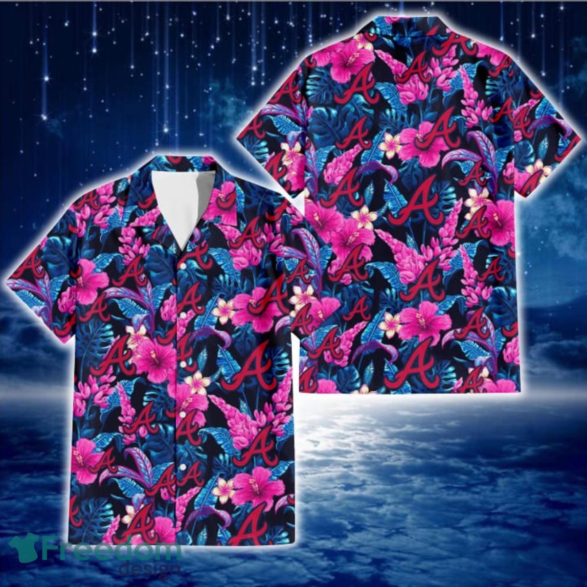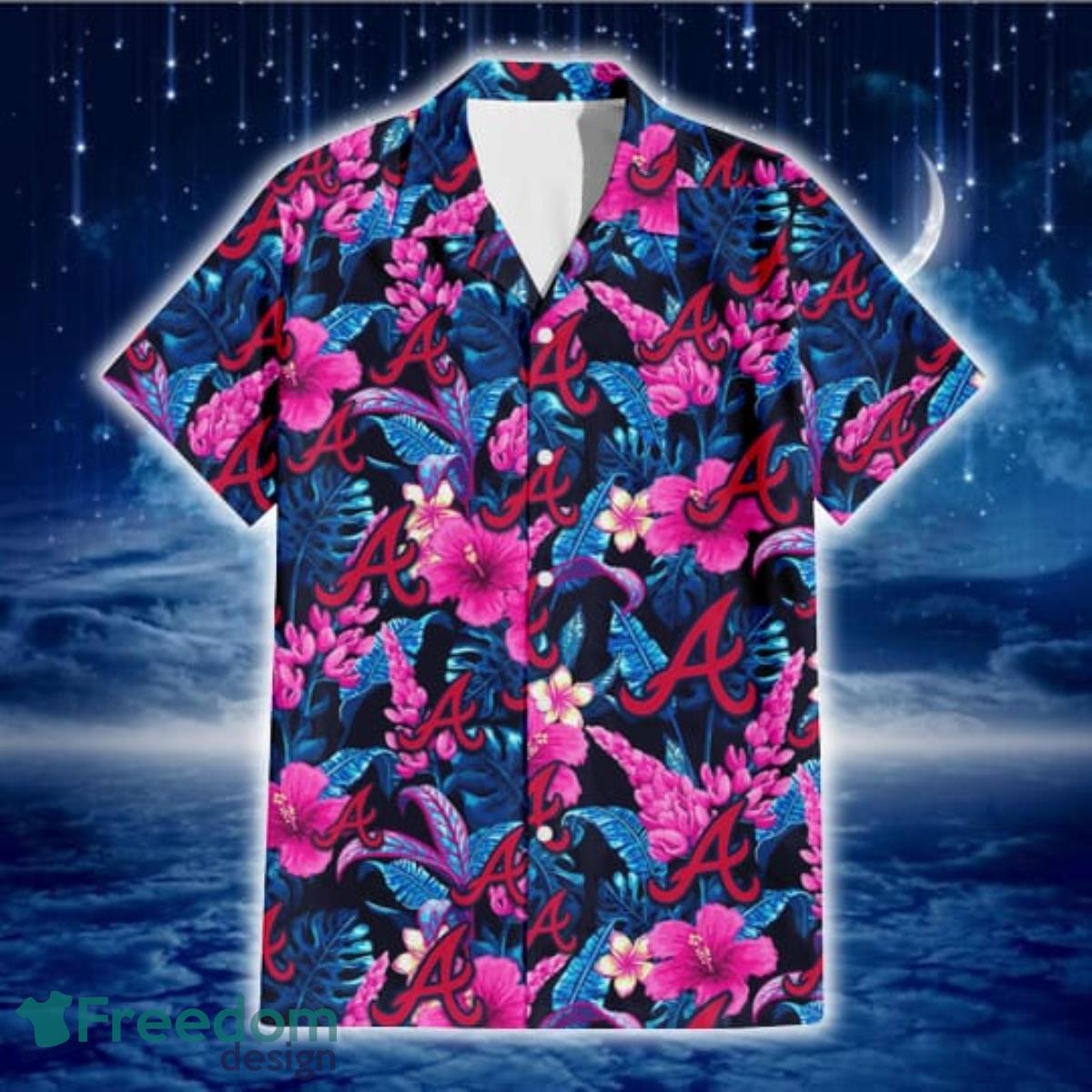 Get the look you need for any occasion with Atlanta Braves Violet Red Hibiscus Blue Leaf Black Background 3D Hawaiian Shirt Gift For Fans. These customizable hawaiian shirts are perfect for any festival, party, vacation, or time at the beach. With multiple color options available these shirts will make you the real eye-catcher at any event!