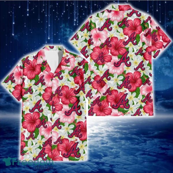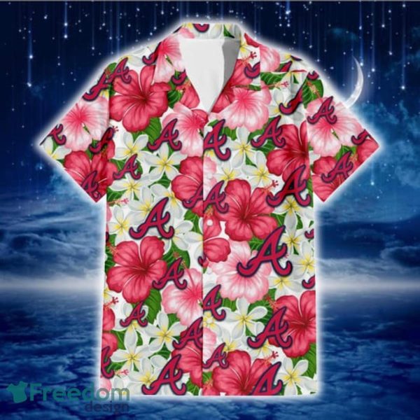 Atlanta Braves White Porcelain Flower Pink Hibiscus White Background 3D Hawaiian Shirt Gift For Fans