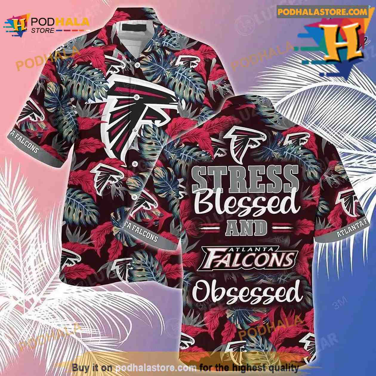 Atlanta Falcons NFL Beach Shirt Stress Blessed Obsessed Summer Hawaiian Shirt Falcons For Fans
