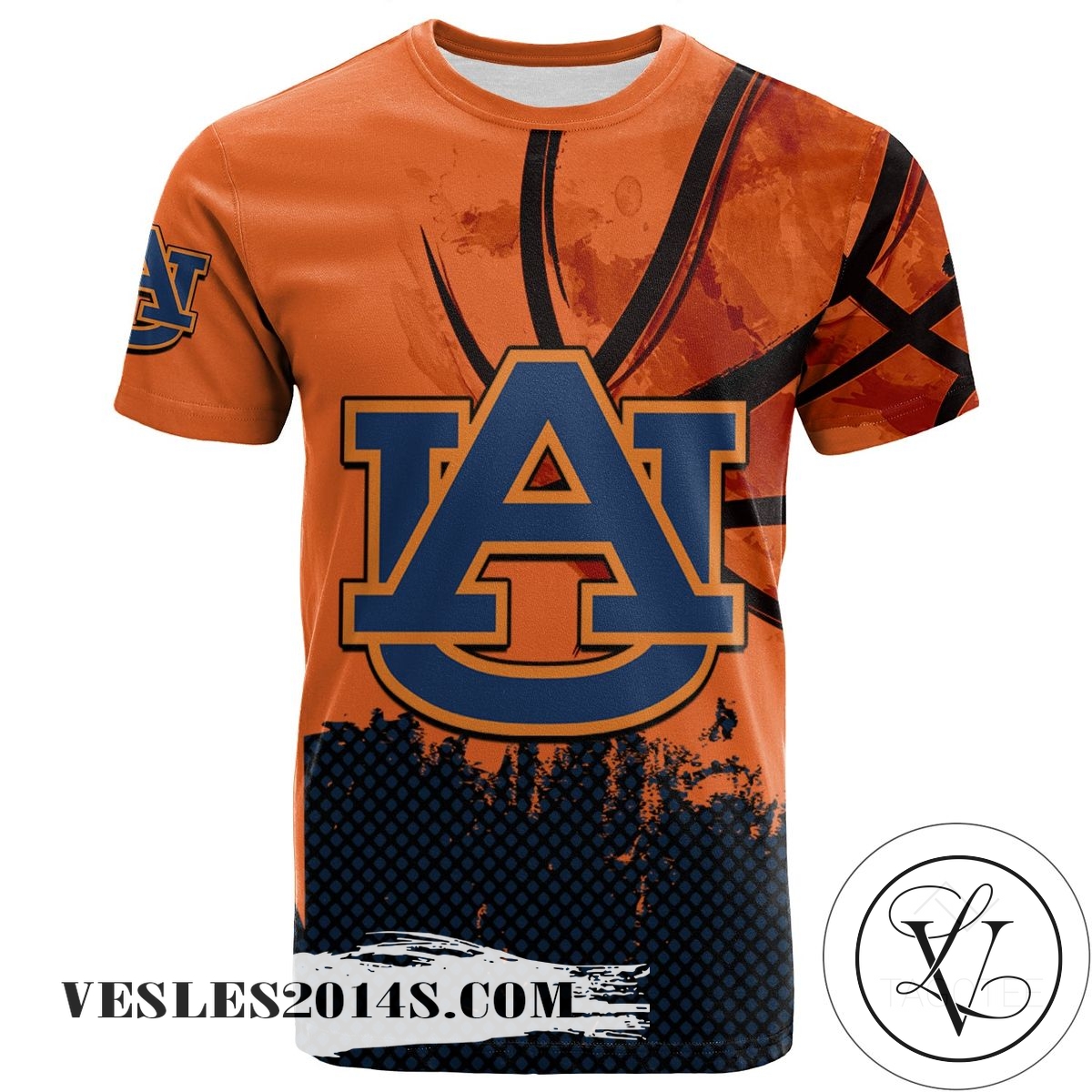 Auburn Tigers All Over Print T-Shirt Men’s Basketball Net Grunge Pattern – NCAA