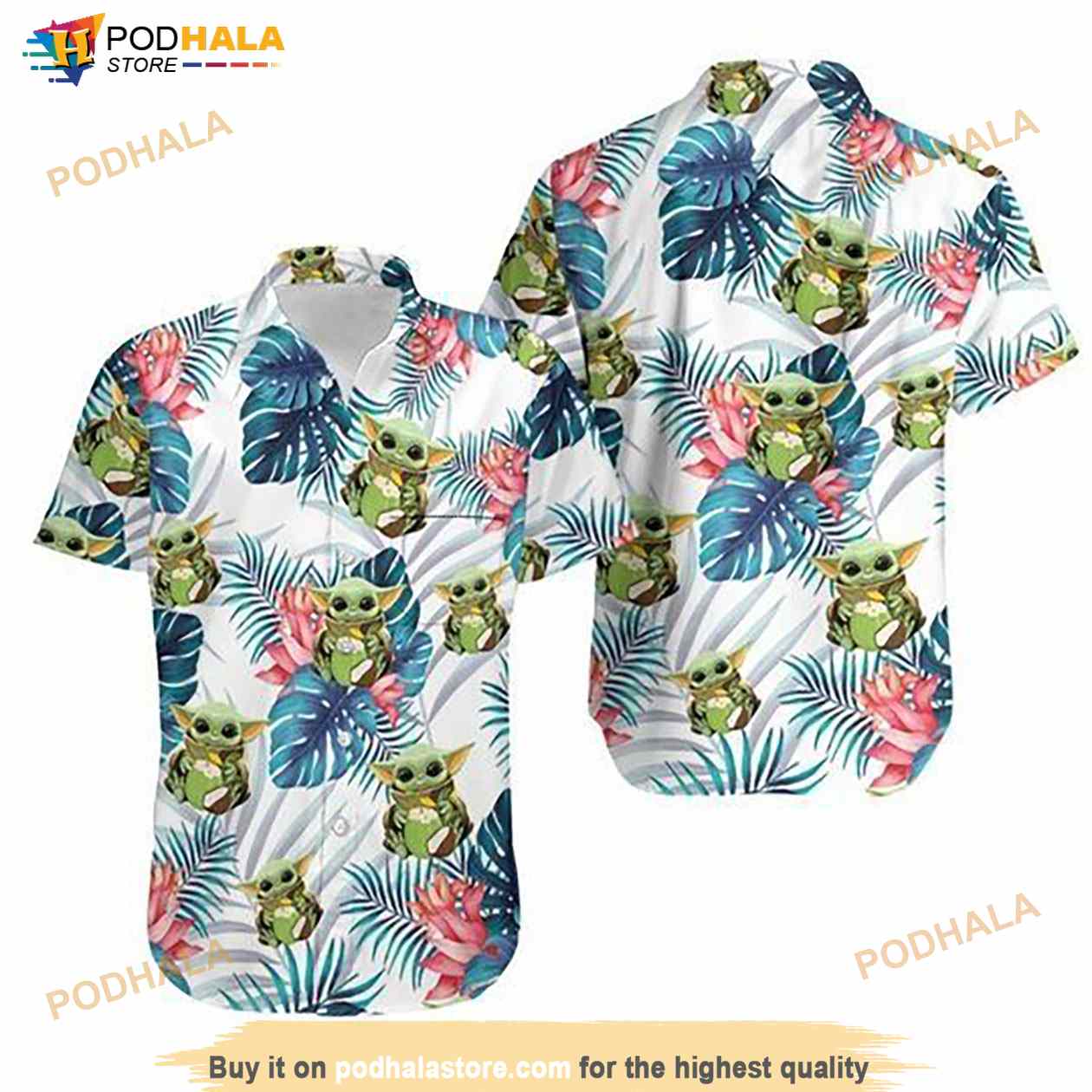 Get the look you need for any occasion with Baby Yoda Hugging Coconuts Seamless Tropical Blue Leaves Colorful Flowers On White Hawaiian Shirt. These customizable hawaiian shirts are perfect for any festival, party, vacation, or time at the beach. With multiple color options available these shirts will make you the real eye-catcher at any event!