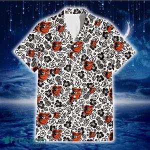 Baltimore Orioles Black And White Hibiscus Leaf White Background 3D Hawaiian Shirt Gift For Fans
