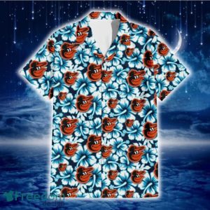 Baltimore Orioles Blue Line White Hibiscus Black Background 3D Hawaiian Shirt Gift For Fans