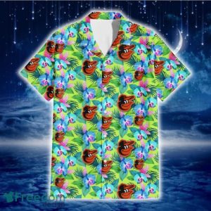 Baltimore Orioles Blue Orchid Green Pink Leaf Green Background 3D Hawaiian Shirt Gift For Fans