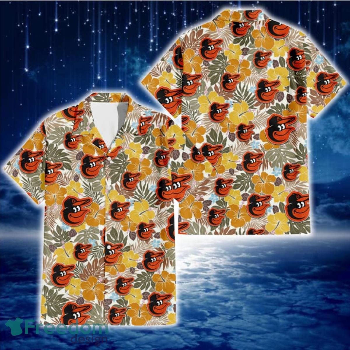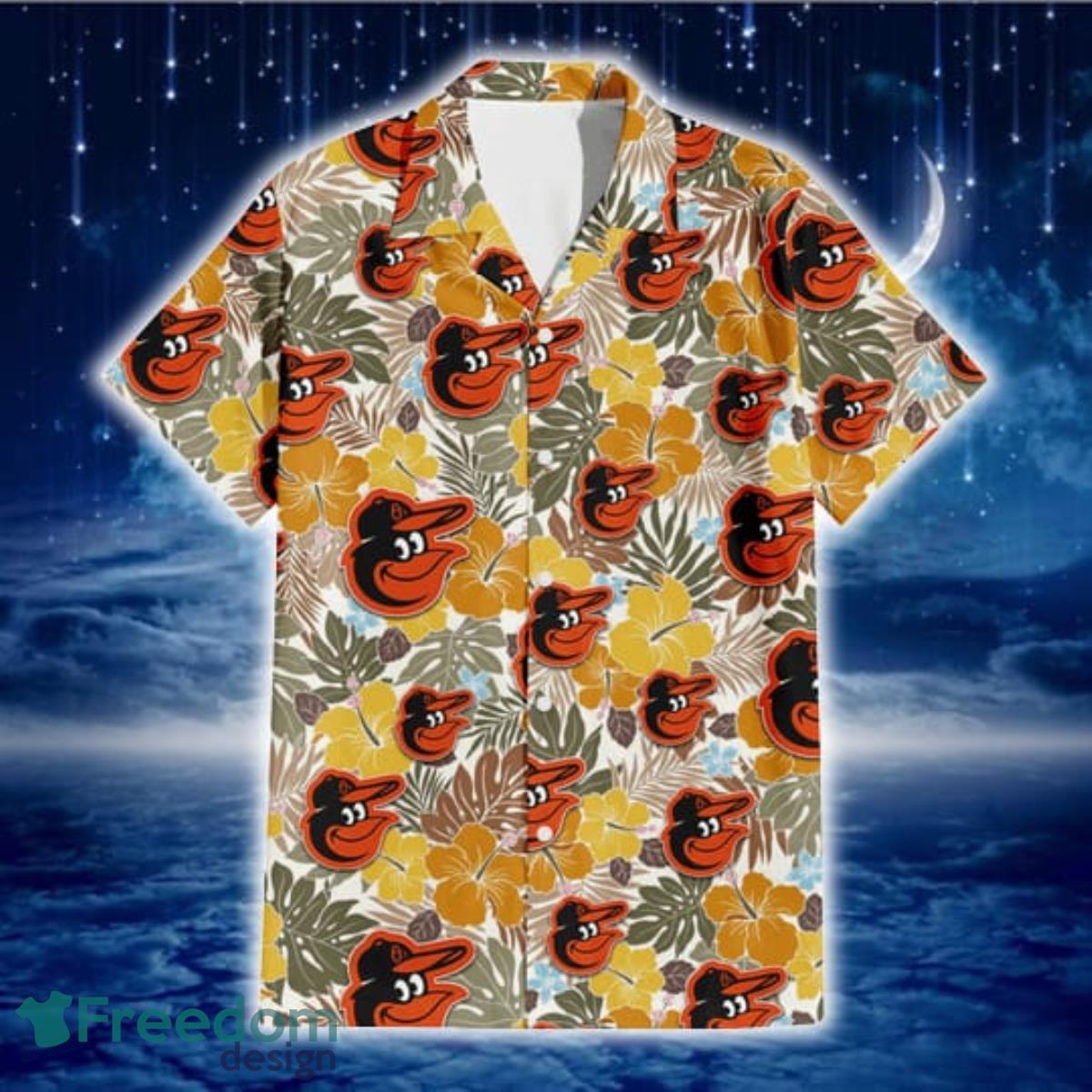 Baltimore Orioles Brown Yellow Hibiscus White Background 3D Hawaiian Shirt Gift For Fans