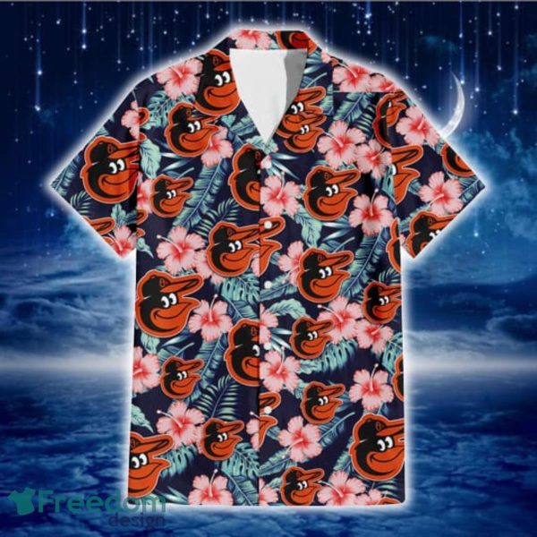 Baltimore Orioles Coral Hibiscus Green Banana Leaf Black Background 3D Hawaiian Shirt Gift For Fans