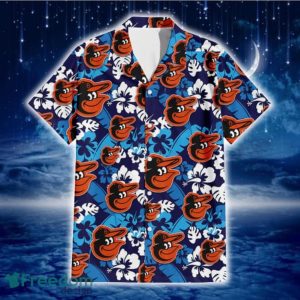 Baltimore Orioles Light Blue Hibiscus Banana Leaf Navy Background 3D Hawaiian Shirt Gift For Fans