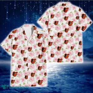 Baltimore Orioles Light Pink Hibiscus White Background 3D Hawaiian Shirt Gift For Fans