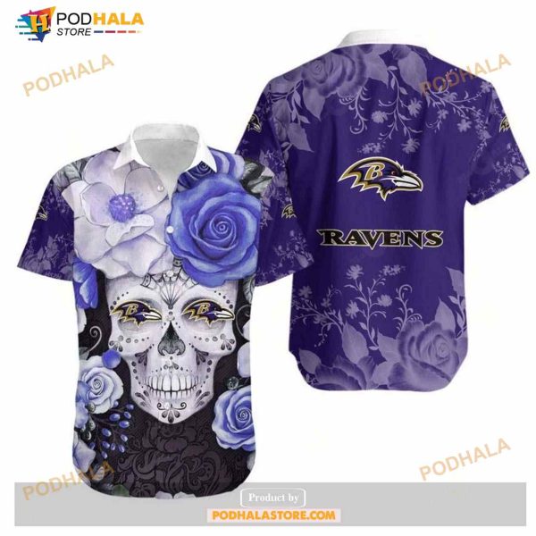 Baltimore Ravens Skull NFL Gift For Fan Hawaiian Graphic Print Shirt