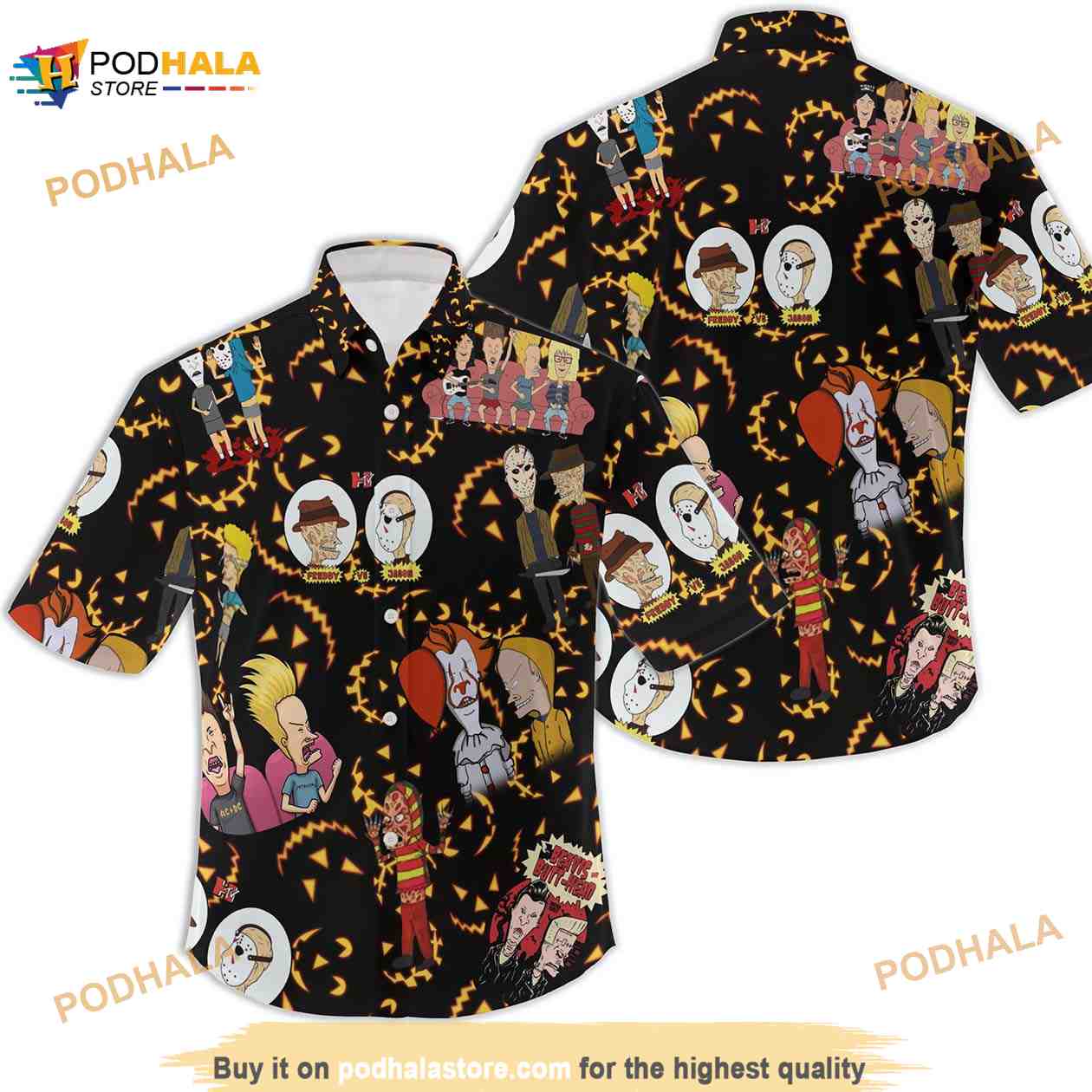 Get the look you need for any occasion with Beavis And Butt-head Funny Halloween Hawaiian Shirt. These customizable hawaiian shirts are perfect for any festival, party, vacation, or time at the beach. With multiple color options available these shirts will make you the real eye-catcher at any event!