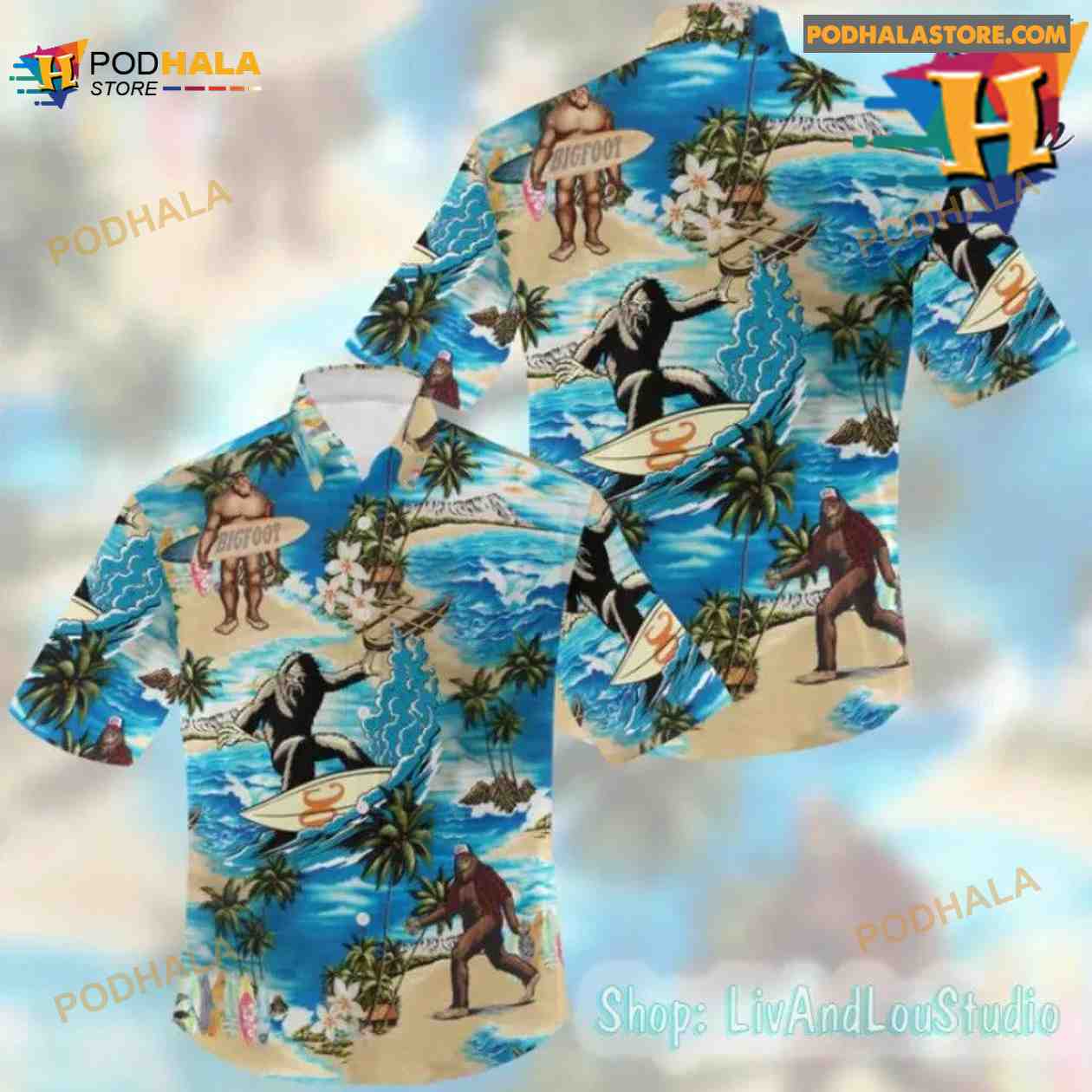 Bigfoot Hawaiian Shirt, Vintage Bigfoot Beach Hawaiian Shirt