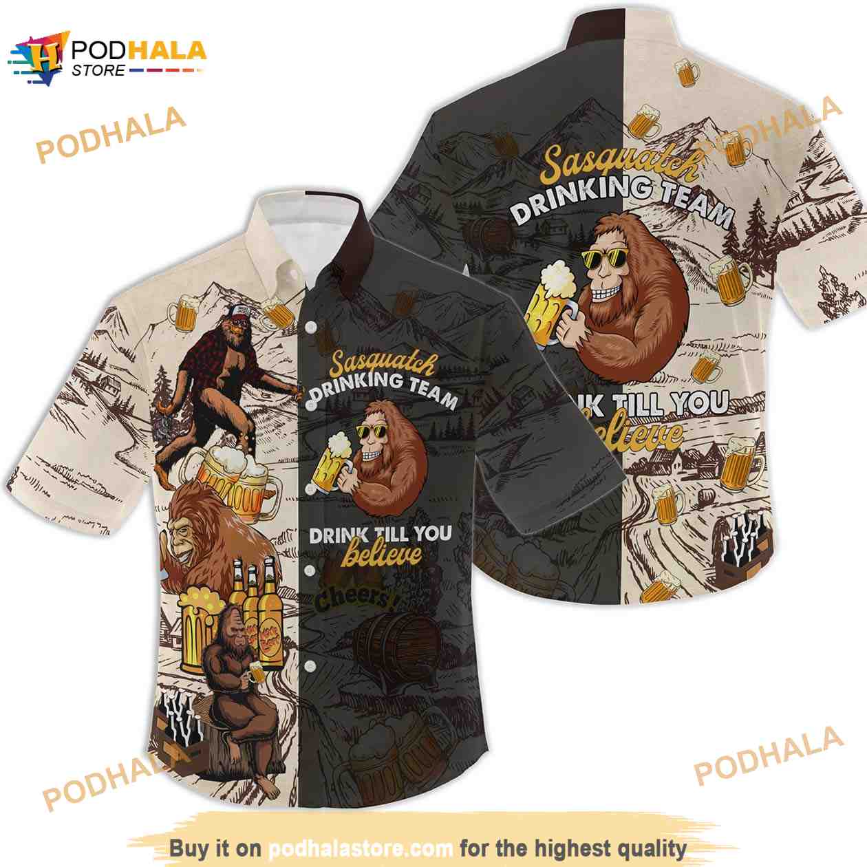Get the look you need for any occasion with Bigfoot Sasquatch Drinking Team Drink Till You Believe Hawaiian Shirt. These customizable hawaiian shirts are perfect for any festival, party, vacation, or time at the beach. With multiple color options available these shirts will make you the real eye-catcher at any event!
