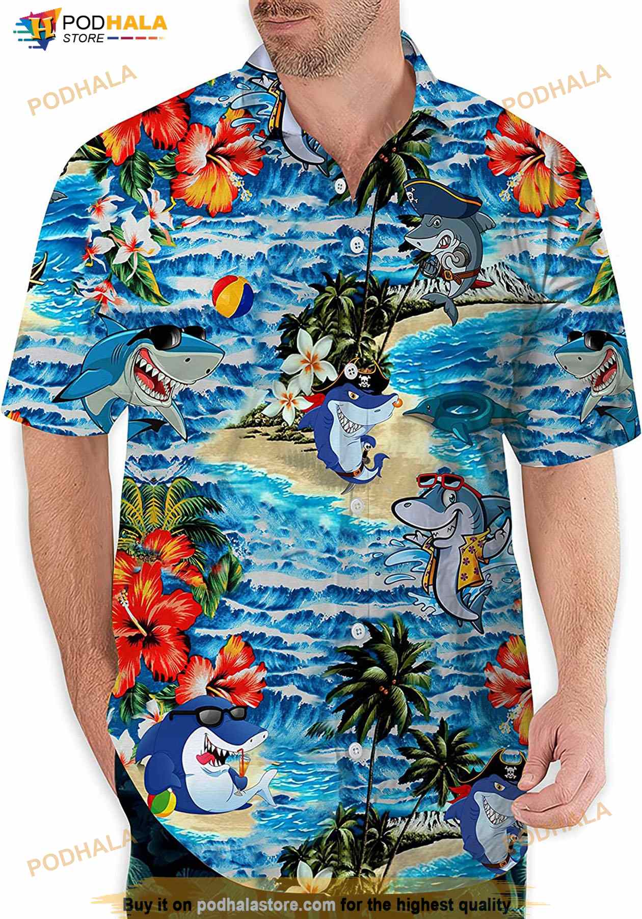 Get the look you need for any occasion with Blue Sharks Flower Hawaiian Shirt. These customizable hawaiian shirts are perfect for any festival, party, vacation, or time at the beach. With multiple color options available these shirts will make you the real eye-catcher at any event!