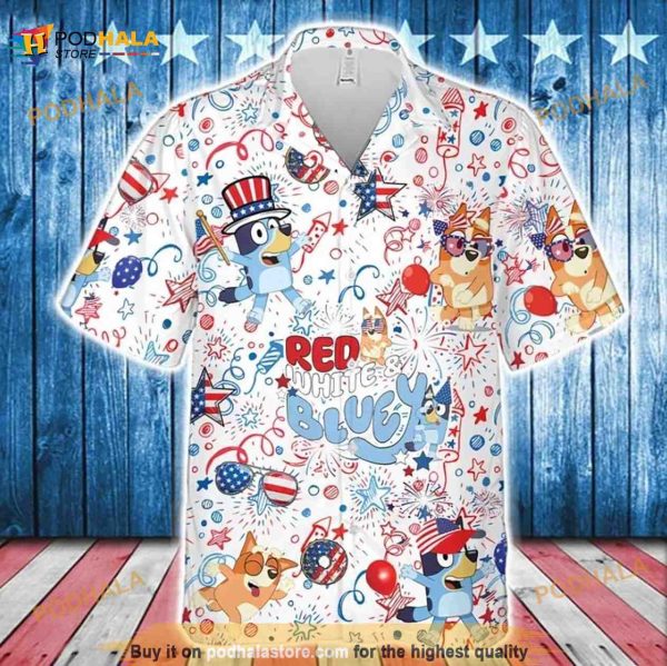 Bluey Family Hawaiian Shirt, Blueydad Characters 4th Of july Button Shirt