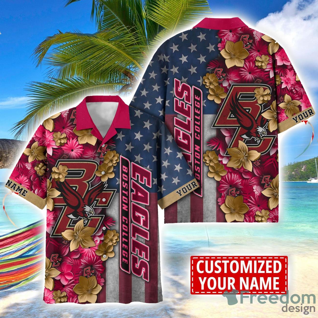 Boston College Eagles Custom name USA Flag 4th July Independence Day Hawaiian Shirt