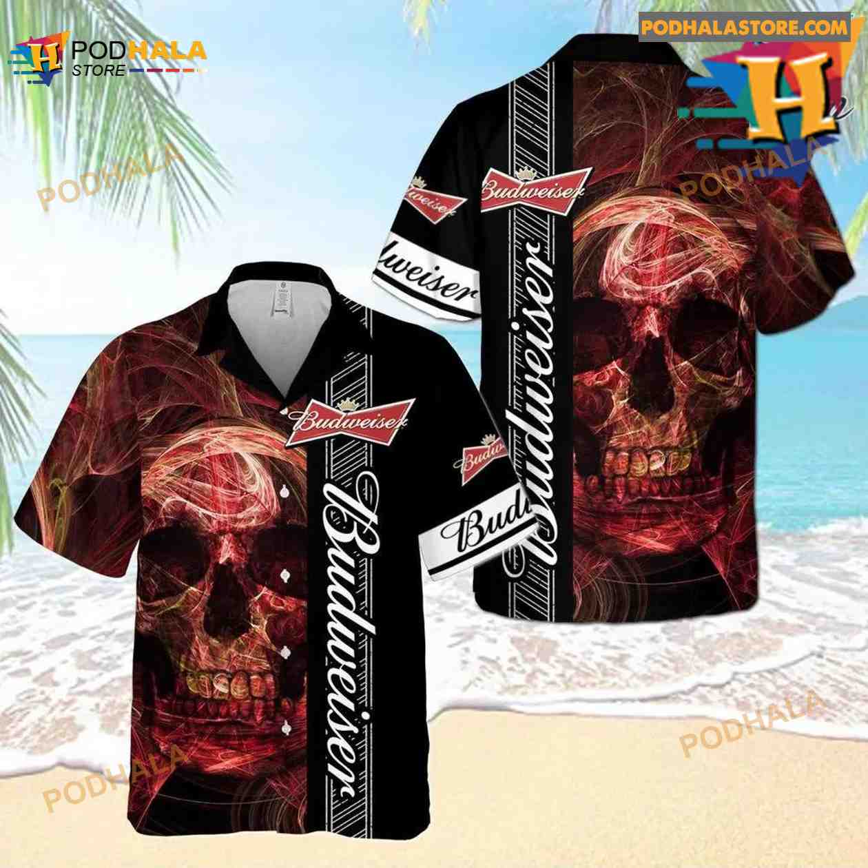 Get the look you need for any occasion with Budweiser Beer Skull Hawaiian Shirt. These customizable hawaiian shirts are perfect for any festival, party, vacation, or time at the beach. With multiple color options available these shirts will make you the real eye-catcher at any event!