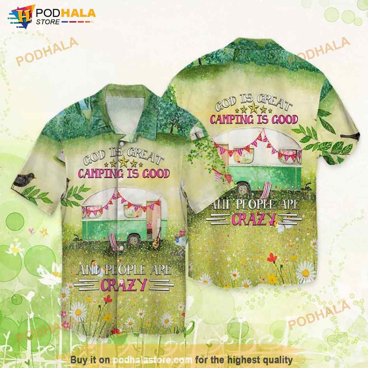 Get the look you need for any occasion with Camping Is Good God Is Great Camping Is Good And People Are Crazy Hawaiian Shirt. These customizable hawaiian shirts are perfect for any festival, party, vacation, or time at the beach. With multiple color options available these shirts will make you the real eye-catcher at any event!