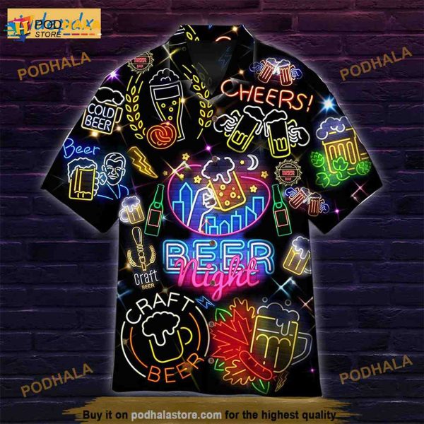 Get the look you need for any occasion with Cheers Beer Night Neon Hawaiian Shirt. These customizable hawaiian shirts are perfect for any festival, party, vacation, or time at the beach. With multiple color options available these shirts will make you the real eye-catcher at any event!