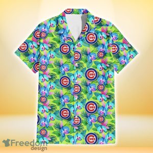 Chicago Cubs Blue Orchid Green Pink Leaf Green Background 3D Hawaiian Shirt Gift For Fans