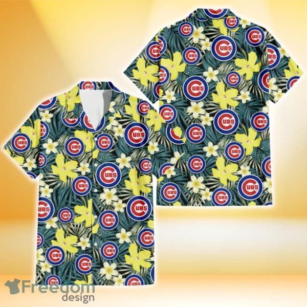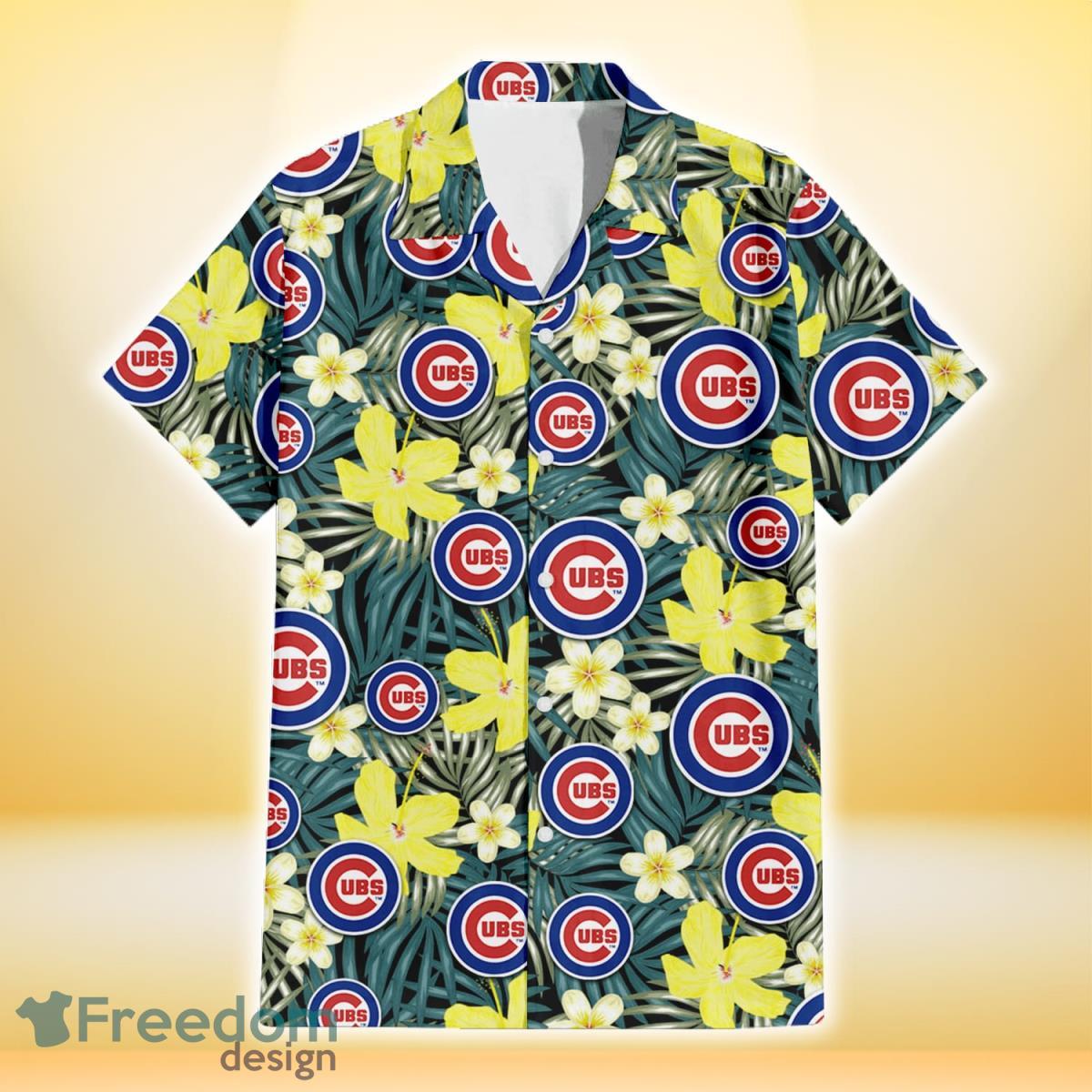 Chicago Cubs Hibiscus Green Palm Leaf Black Background 3D Hawaiian Shirt Gift For Fans
