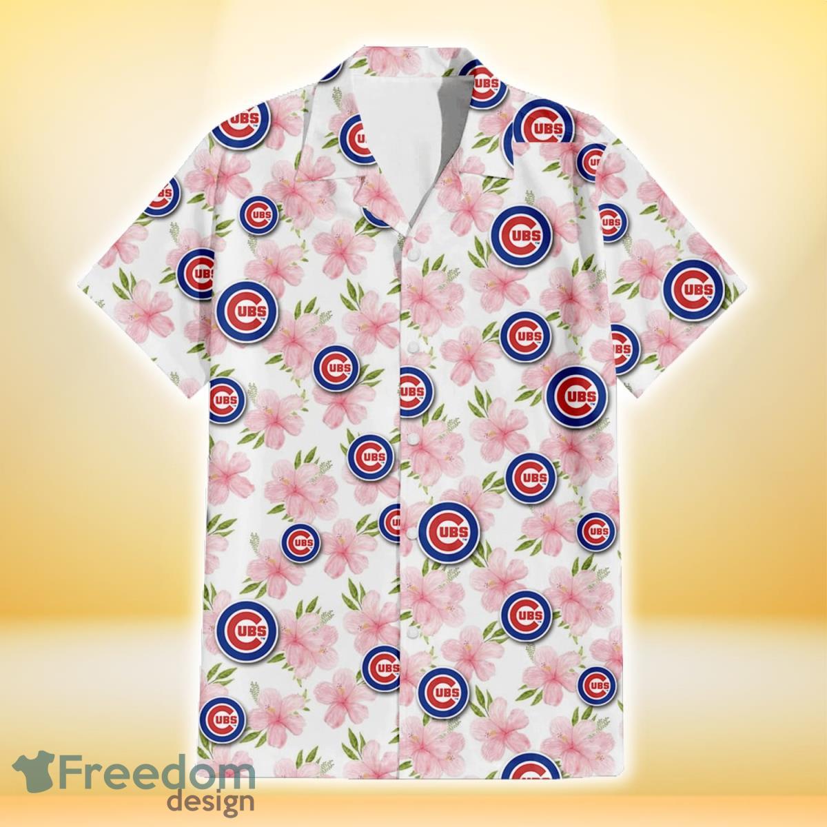 Chicago Cubs Light Pink Hibiscus White Background 3D Hawaiian Shirt Gift For Fans