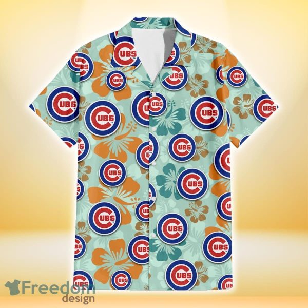 Chicago Cubs Orange Green Hibiscus Pale Green Background 3D Hawaiian Shirt Gift For Fans