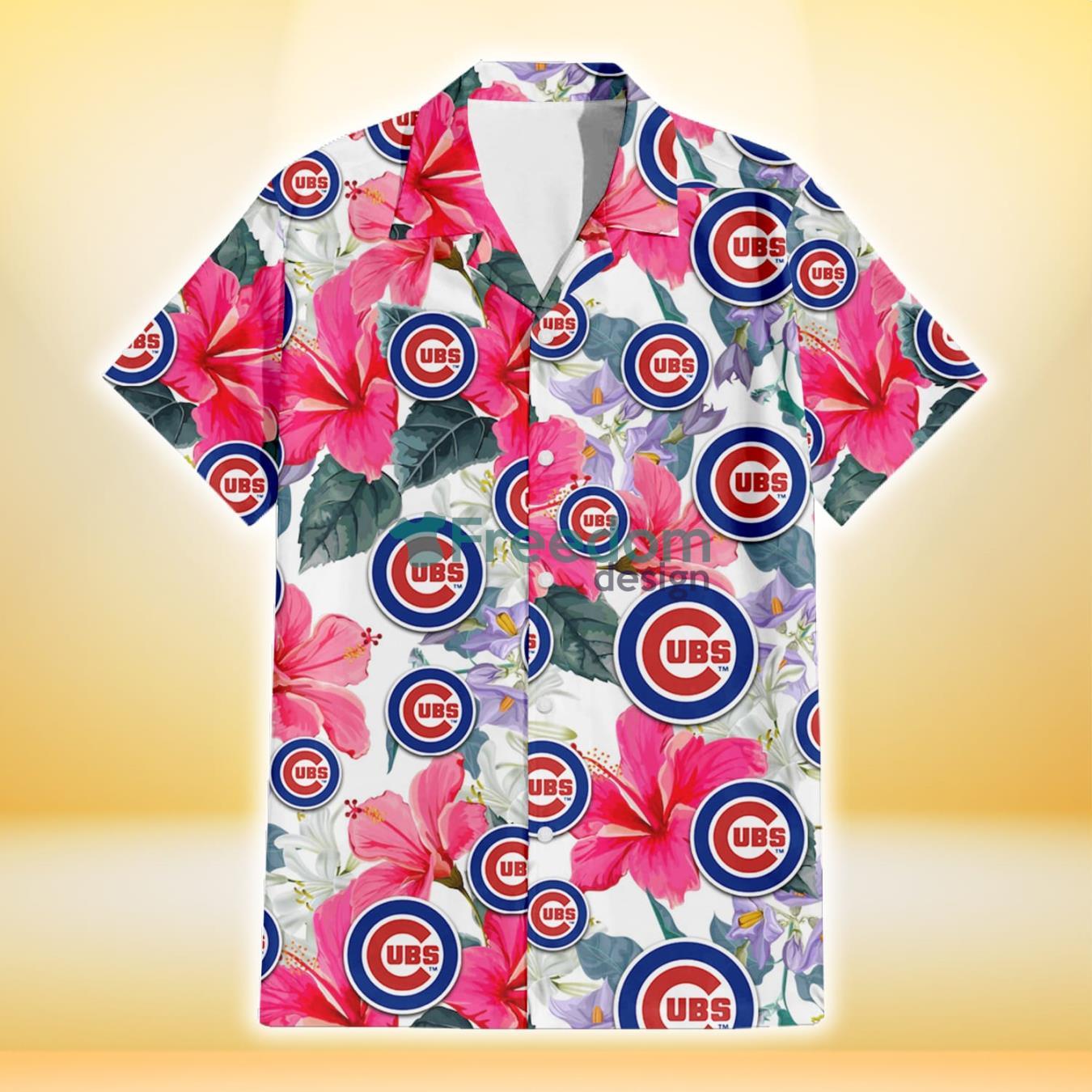 Chicago Cubs Pink Hibiscus White Orchid White Background 3D Hawaiian Shirt Gift For Fans