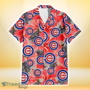 Chicago Cubs Red Hibiscus Gray Leaf Beige Background 3D Hawaiian Shirt Gift For Fans
