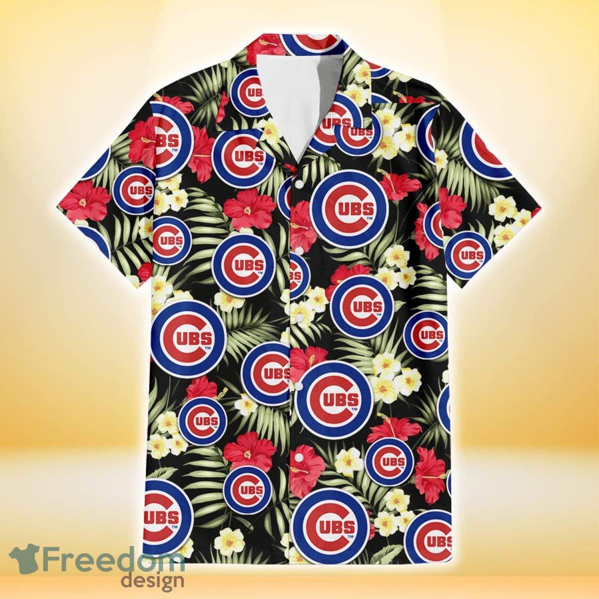 Chicago Cubs Red Hibiscus Yellow Porcelain Flower Black Background 3D Hawaiian Shirt Gift For Fans