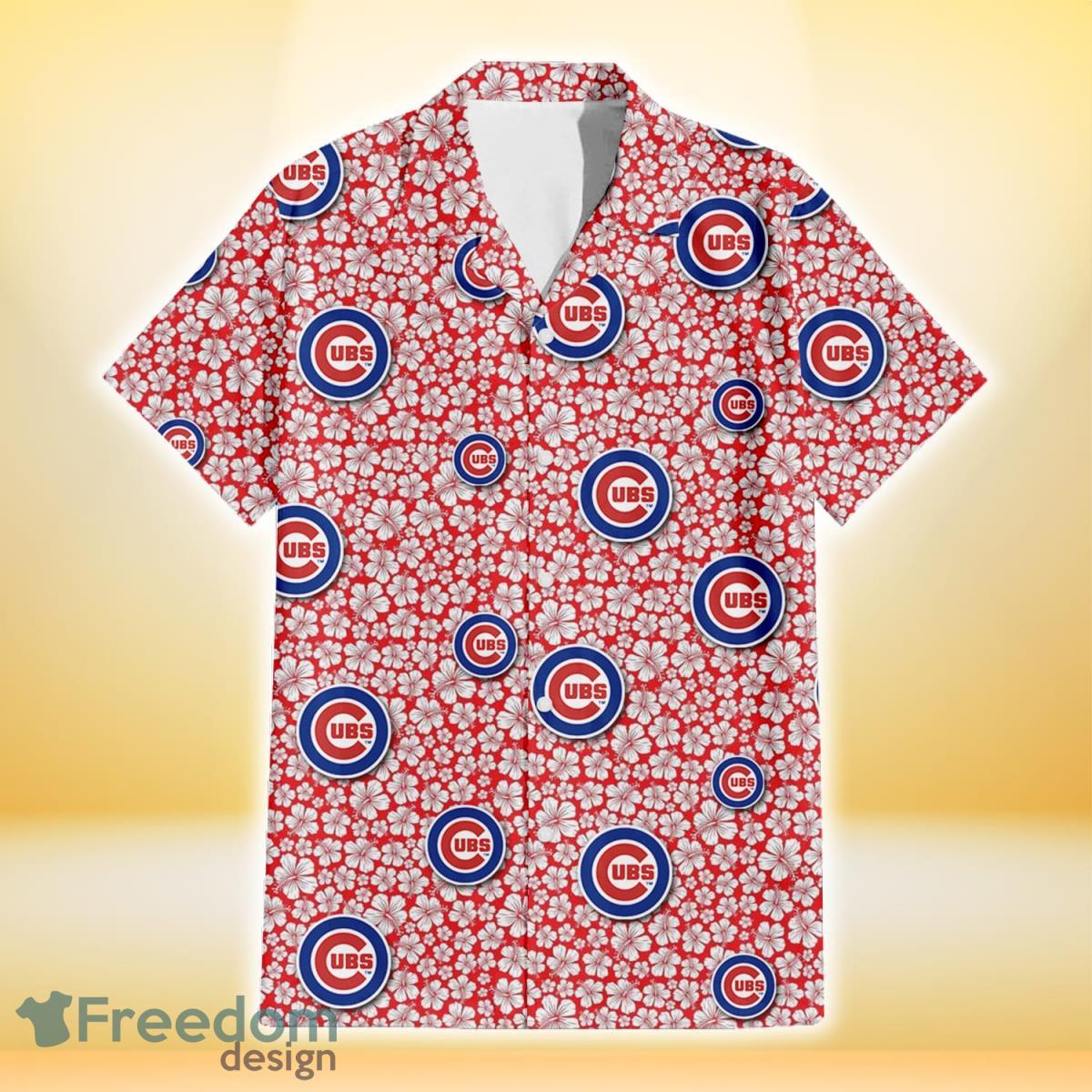 Chicago Cubs Tiny White Hibiscus Pattern Red Background 3D Hawaiian Shirt Gift For Fans