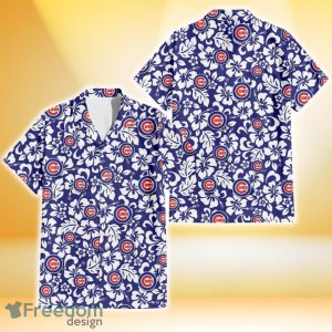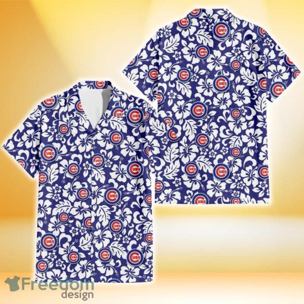 Chicago Cubs White Hibiscus Pattern Slate Blue Background 3D Hawaiian Shirt Gift For Fans