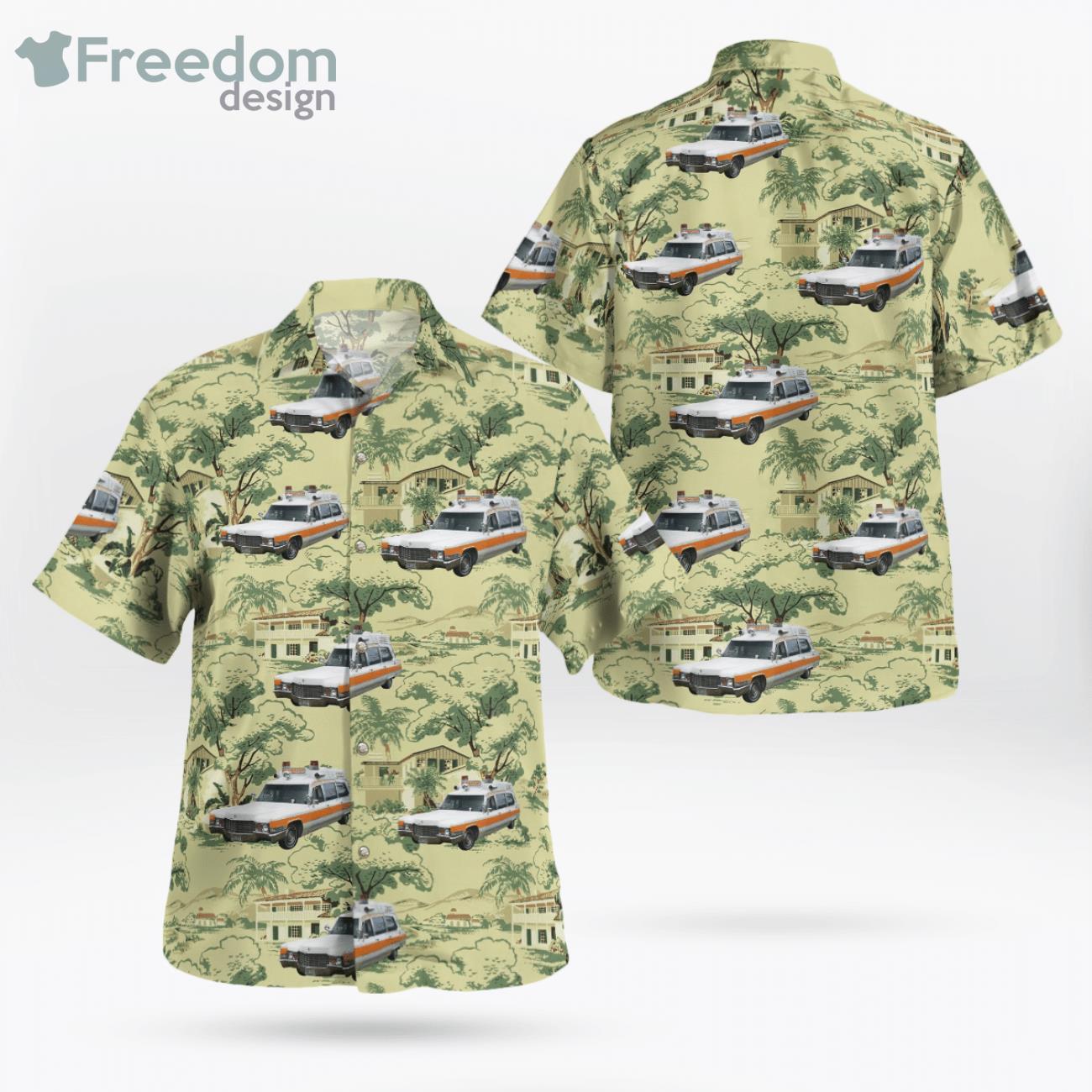 Chicago Llinois 1969 Cadillac Superior Ambulance Service Hawaiian Shirt