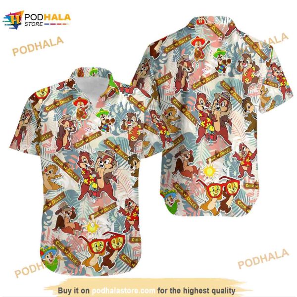 Chip And Dale Disney Hawaiian Shirt, Summer Tropical Print Vacation Button Shirt