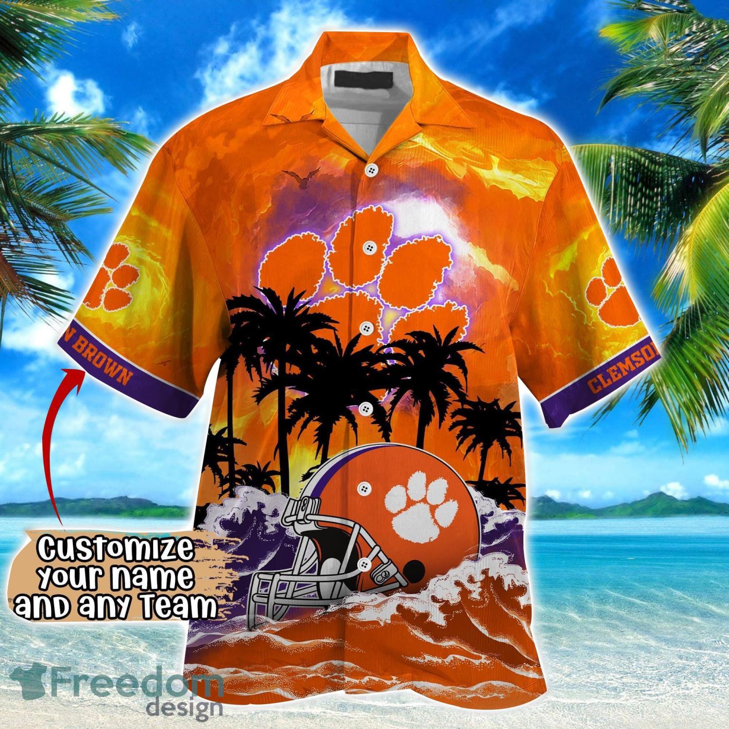 Clemson Tigers NCAA Hawaiian Shirt Coconut Tree Waves Beach Hawaii Shirt Custom Name For Fans
