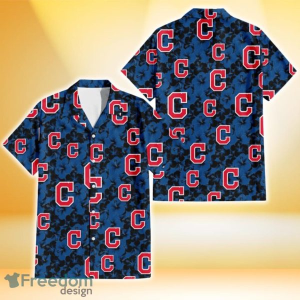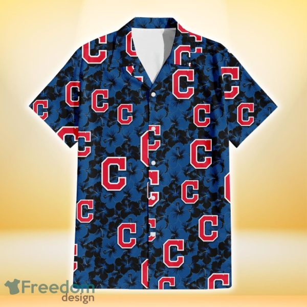 Cleveland Indians Black Dark Blue Hibiscus Black Background 3D Hawaiian Shirt Gift For Fans