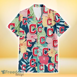 Cleveland Indians Colorful Sketch Hibiscus Dark Green Background 3D Hawaiian Shirt Gift For Fans