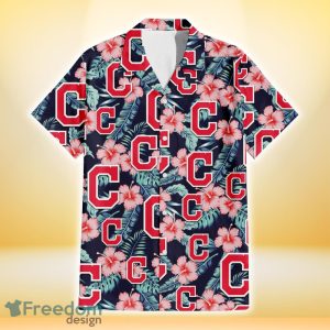 Cleveland Indians Coral Hibiscus Green Banana Leaf Black Background 3D Hawaiian Shirt Gift For Fans