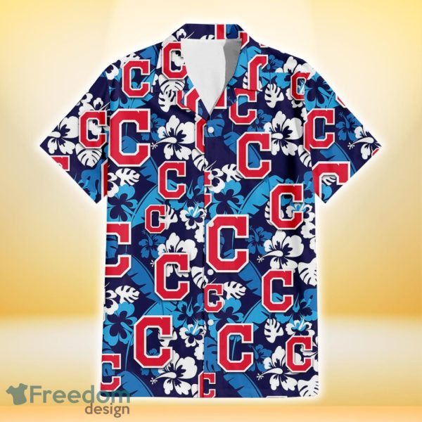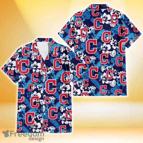 Cleveland Indians Light Blue Hibiscus Banana Leaf Navy Background 3D Hawaiian Shirt Gift For Fans