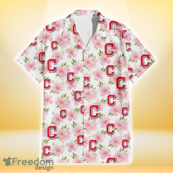 Cleveland Indians Light Pink Hibiscus White Background 3D Hawaiian Shirt Gift For Fans