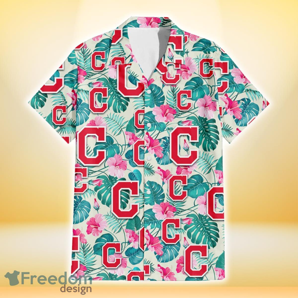 Cleveland Indians Pink Hibiscus Green Leaf Beige Background 3D Hawaiian Shirt Gift For Fans