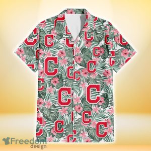 Cleveland Indians Pink Hibiscus Porcelain Flower Tropical Leaf White Background 3D Hawaiian Shirt Gift For Fans