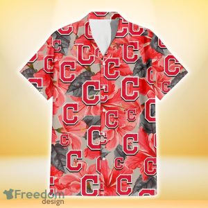 Cleveland Indians Red Hibiscus Gray Leaf Gainsboro Background 3D Hawaiian Shirt Gift For Fans