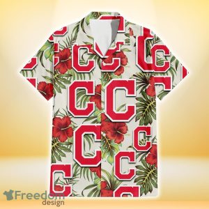 Cleveland Indians Red Hibiscus Green Tropical Leaf Cream Background 3D Hawaiian Shirt Gift For Fans